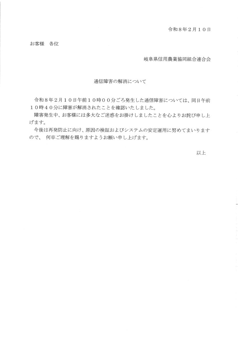 【お知らせ】令和8年2月10日発生のシステム障害について