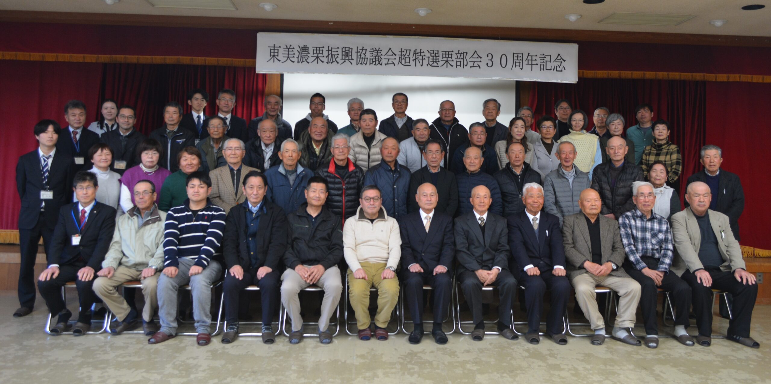 東美濃栗振興協議会は1月30日、中津川市茄子川のJAひがしみの本店で超特選栗の取り組み30周年を記念した大会を開催しました。関係者を招いて感謝を表すとともに、今後の産地振興へ向け意思統一を図りました。